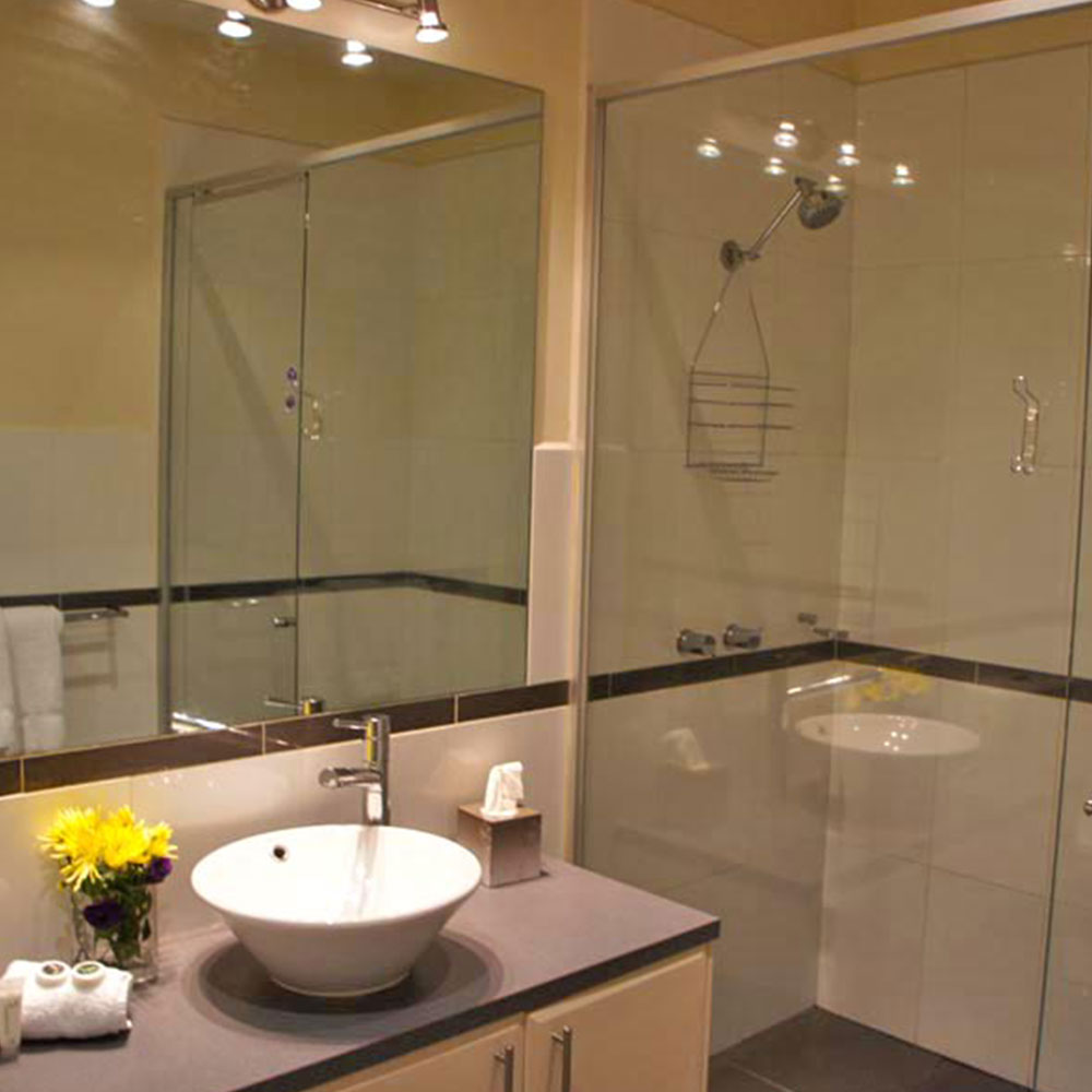 This serviced apartment has generous living areas. The entertainment area opens out through folding doors to a shaded private courtyard for outdoor living and alfresco entertaining. A den/study area opens off the main living area.